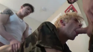 Slutty guy gets messy during a gangbang session